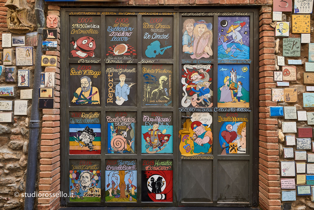 Restano ancora tre soli pannelli liberi, ma i sempreverdi fieui non sembrano preoccuparsi e scherzosamente chiosano: “La cantina ha un’altra porta in vico Sant’Eulalia con tanti pannelli vuoti: possiamo continuare per anni!”.