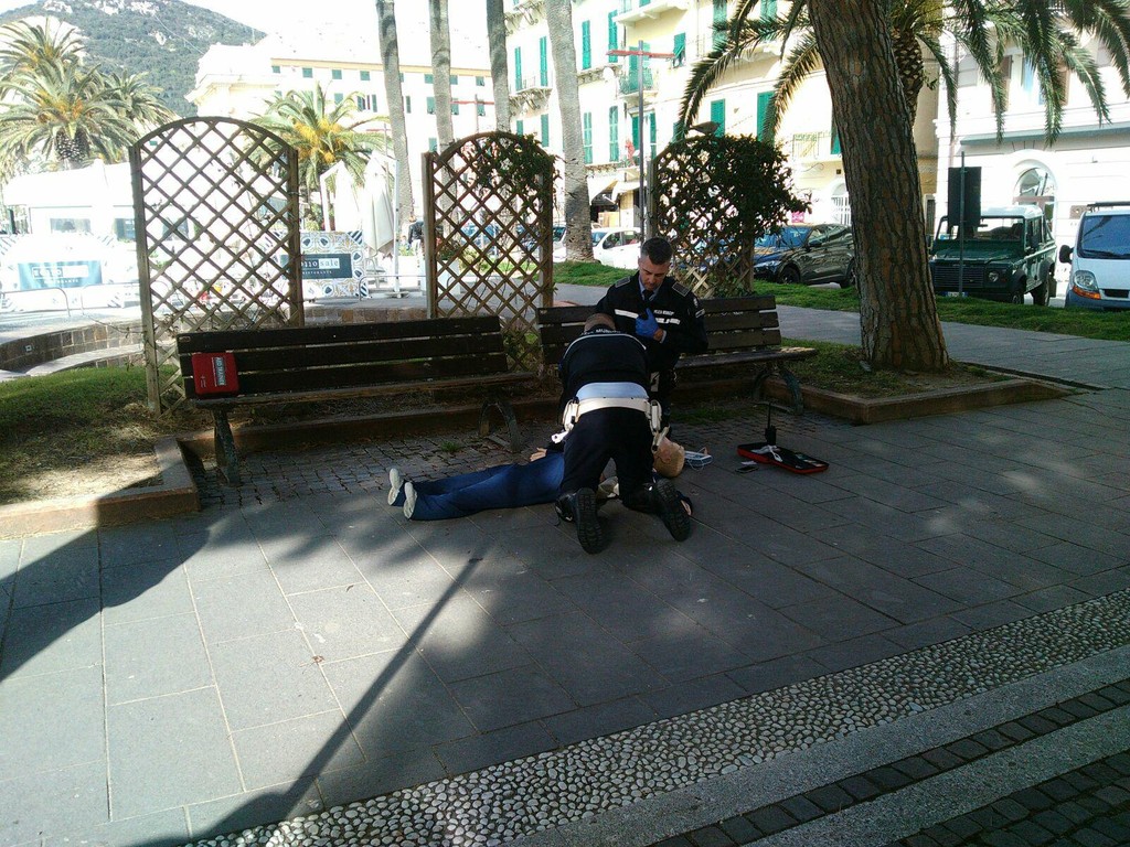 Si è svolta questa mattina, presso i bagni Garibaldi di Finale Ligure, una esercitazione con dimostrazione pubblica, condotta in modo congiunto dai militi della Croce Bianca di Finalmarina e dagli agenti di polizia locale, sulle tecniche di rianimazione anche mediante l'uso del defibrillatore semiautomatico.