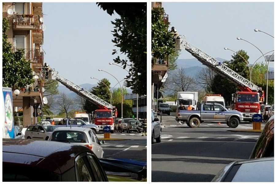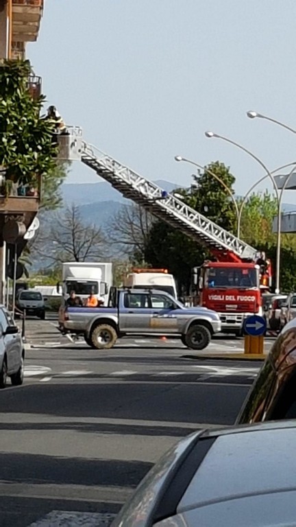 Strada chiusa per permettere l'intervento dell'autoscala