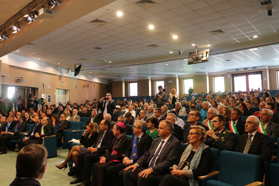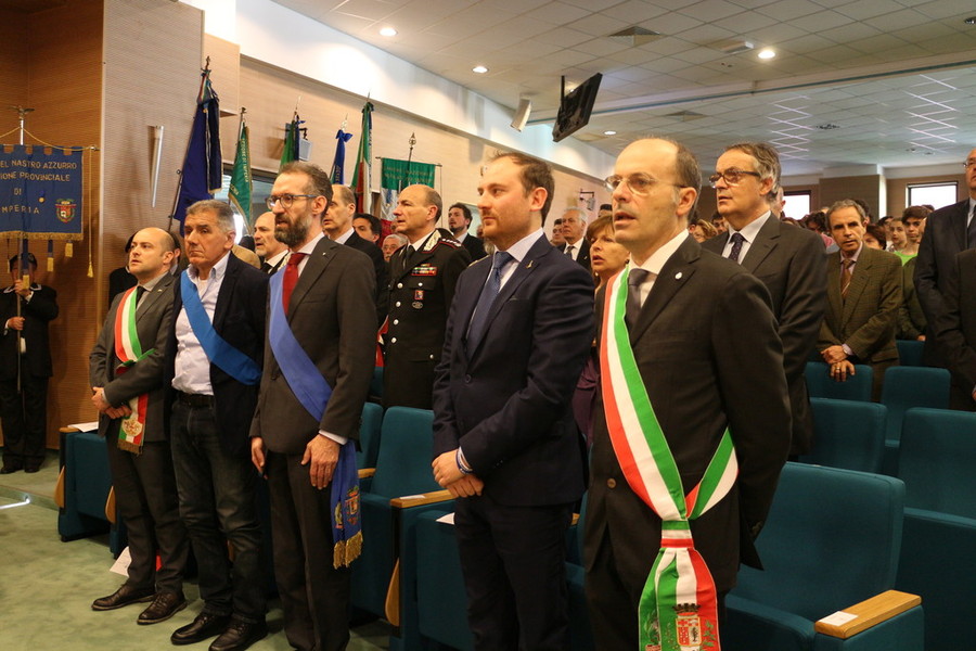 La seduta, iniziata con seppur con un po’ di ritardo dovuto ad un incidente sull’autostrada è stata aperta dal saluto del presidente dell’Assemblea legislativa della Liguria Alessandro Piana, alla presenza dei sindaci, del presidente della Provincia e i rappresentanti delle autorità civili e militari. In platea anche un numeroso gruppo di studenti di diversi Istituti imperiesi.