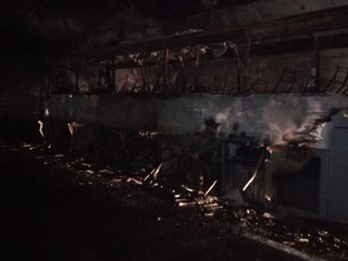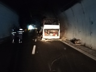 Riaperta una corsia della galleria dove un pullman ha preso fuoco