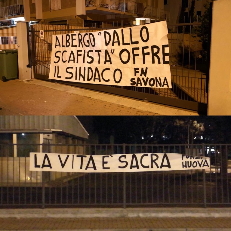 Ma quello relativo al caso del piccolo Alfie non è stato l'unico striscione comparso per mano di Forza Nuova nella notte pietrese: all'esterno dell'albergo "Aurora", struttura che ospita 25 rifugiati nell’ambito del progetto d'accoglienza gestito dalla Fondazione Ceis. "Albergo 'dallo scafista': offre il sindaco" la scritta inequivocabile esposta sui cancelli della struttura alberghiera.