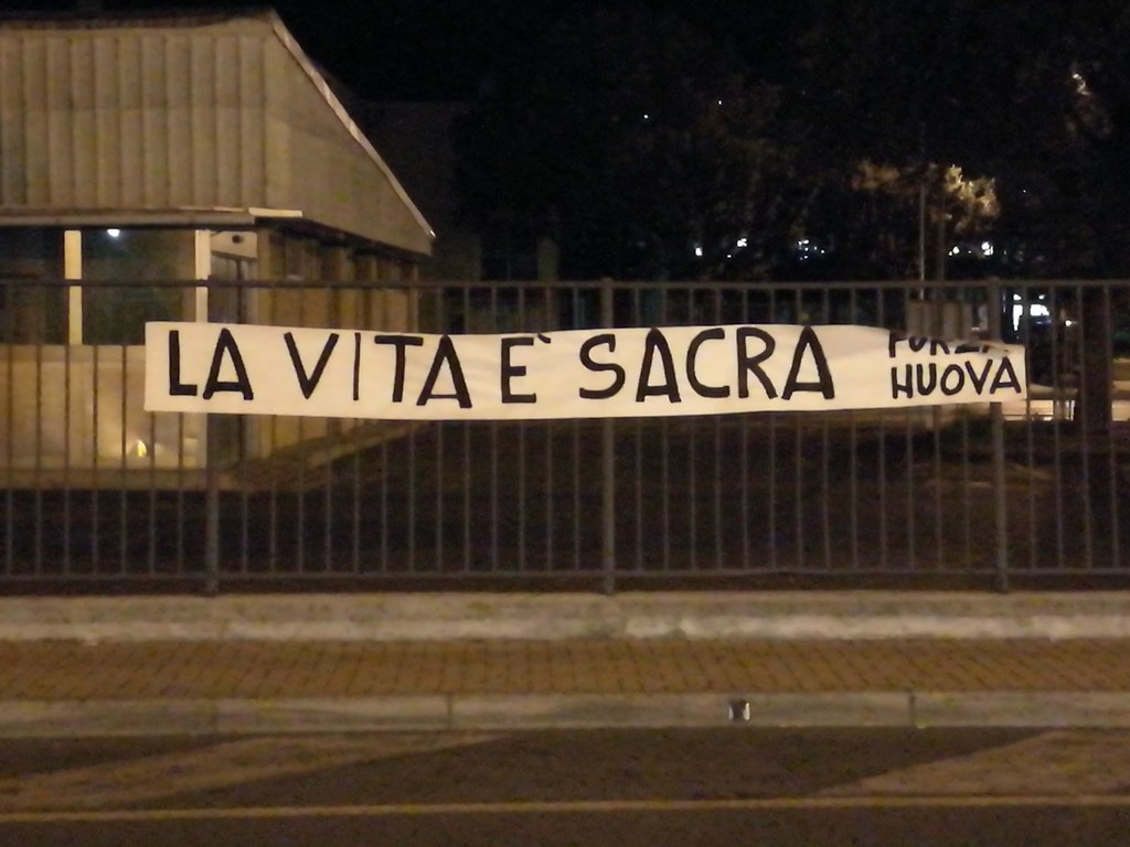 Uno striscione con una nota ben chiara e preciso: "La vita è sacra". È questo il messaggio lasciato da Forza Nuova fuori dall'ospedale Santa Corona di Pietra Ligure: un chiaro riferimento alla vicenda del piccolo Alfie Evans che, affetto da una patologia neurologica degenerativa non ancora conosciuta, si è spento nel reparto di terapia intensiva dell’Alder Hey Children’s Hospital di Liverpool in seguito al distacco delle macchine che lo tenevano in vita deciso all’Alta Corte inglese.