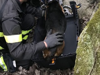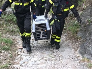 Vigili del fuoco soccorrono un cane in un sentiero tra Loano e Ranzi