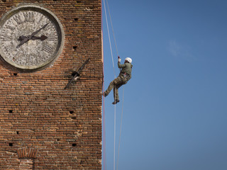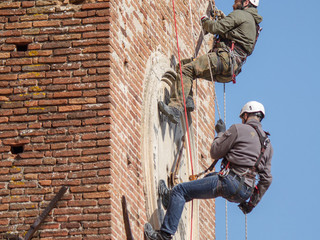 Spiegano i fratelli Elena e Alberto Formento, titolari: “Noi operiamo di norma su monumenti vincolati e, per farlo, da quasi un decennio lavoriamo con personale specializzato che è stato formato ed addestrato per i lavori in quota. I restauratori certificati, in totale sicurezza e rispettando ogni requisito di legge, utilizzano i sistemi su fune per operare in contesti di difficile accesso. Oltre ad essere tutti preparati su queste tecniche, ognuno di loro ha la propria specializzazione: dai tecnici delle coperture agli operai specializzati ed ai restauratori che intervengono su intonaci e superfici pittoriche. Stefania, per esempio, la nostra restauratrice storica, oggi è diventata anche un’ottima free-climber!”.