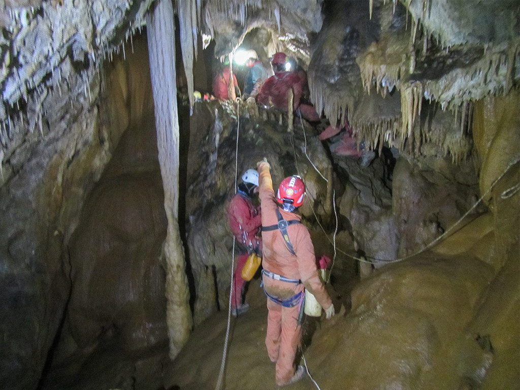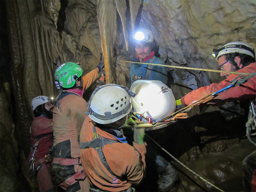 In particolare è stata impiegata una sola corda per il recupero della barella (a differenza della tecnica precedente che prevedeva due corde parallele). Questo approccio permette infatti un’ottimizzazione dei materiali ma soprattutto una sostanziale diminuzione nei tempi di attrezzamento e recupero dell’infortunato, fondamentali in qualsiasi situazione ma determinanti in cavità di grande profondità, pur mantenendo inalterati gli standard di sicurezza di tutte le operazioni.
