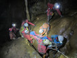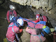 E' stato simulato un intervento coordinato per il soccorso medicalizzato ed il recupero di un ferito infortunatosi al fondo della grotta, ad una profondità di -134 m.