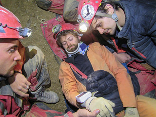 Trasmesse all'esterno le condizioni del ferito, è stato pianificato il recupero: innanzitutto con l'invio all'interno della grotta di personale medico che lo ha ulteriormente condizionato e predisposto per il trasporto, supervisionando le operazioni di imbarellamento.