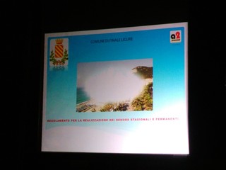 Definiti tutti gli aspetti, sono stati tracciati degli ambiti nei vari rioni (per esempio Finalmarina nel conta 5). Dopodiché, nel piano dei dehors sono stati presi in esame tutti gli aspetti in base a tutto ciò che è stato visto e usato: i colori, i materiali, le tende, tavolini, sedie e sgabelli, i cosiddetti “elementi complementari”, come fioriere, frangivento e sistemi di riscaldamento (a tal proposito è stato ricordato che devono essere elettrici, il gas è abolito) e tutto ciò è stato descritto e illustrato con l’ausilio delle proiezioni fotografiche.