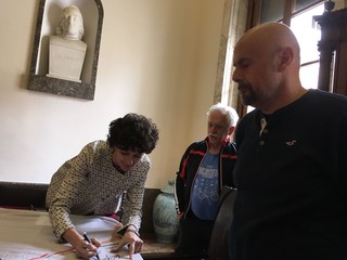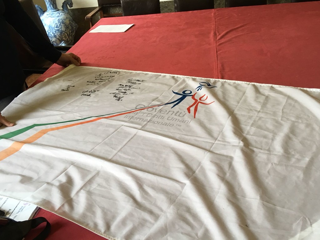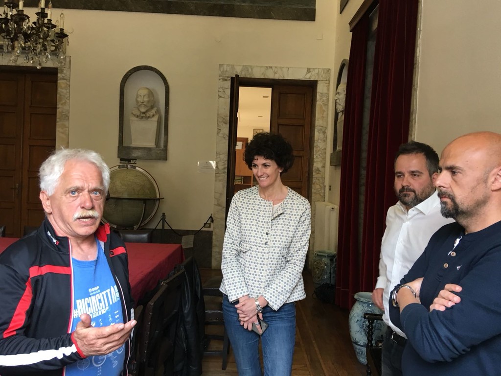 Il responsabile del Comitato Diritti Umani di Milano Vittorio Barbanotti sta compiendo questo viaggio in sella alla sua bicicletta e ha fatto tappa questa mattina nella sala Giunta del comune di Savona dal sindaco Ilaria Caprioglio, l’assessore allo sport Maurizio Scaramuzza e il consigliere comunale di Rete a Sinistra” Marco Ravera il quale ha proposto l’incontro.
