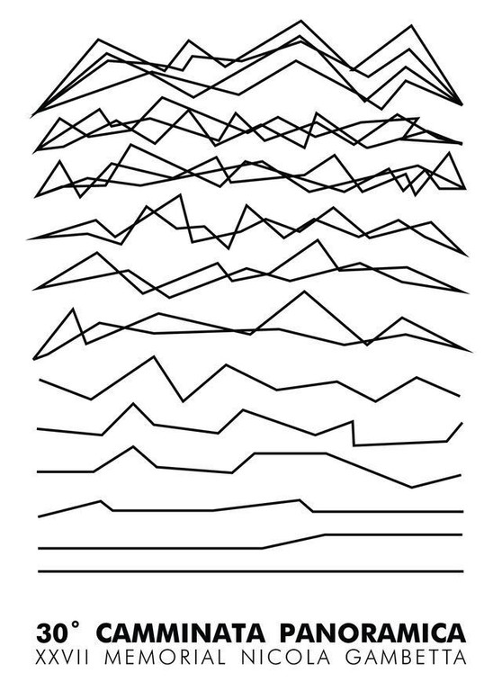 Il visual rappresenta la camminata panoramica a partire dal mare (la prima linea piatta in basso) via via sempre più frastragliandosi fino a diventare una montagna (le ultime righe in alto)".