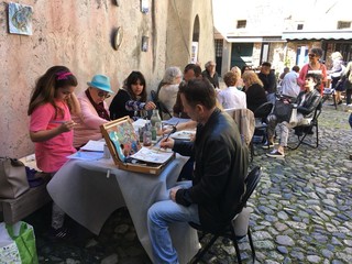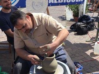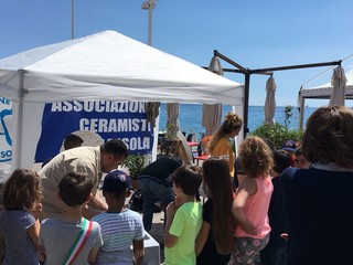 Siamo partiti da Albissola Superiori con i ceramisti della scuola albisolese che si sono esibiti nella stupefacente tecnica della modellazione al tornio davanti a un nutrito gruppetto di bambini che a loro volta hanno potuto provare a "mettere le mani" in questa speciale arte.