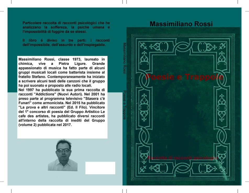 - GIOVEDI 24 MAGGIO, ore 21.00 Art Space presentazione della raccolta di racconti: "Poesie e trappole" di Massimiliano Rossi. Quarta pubblicazione a cura del Gruppo Artistico Le cafe des artistes. Si tratta di una particolare raccolta di racconti che analizzano la psiche umana, la sofferenza e l'impossibilità di sfuggire a se stessi, Durante la serata, moderata da Flavio Sasso, l'autore si esibirà anche in performance musicali legati alla sua formazione artistica. In allegato le informazioni sul libro.