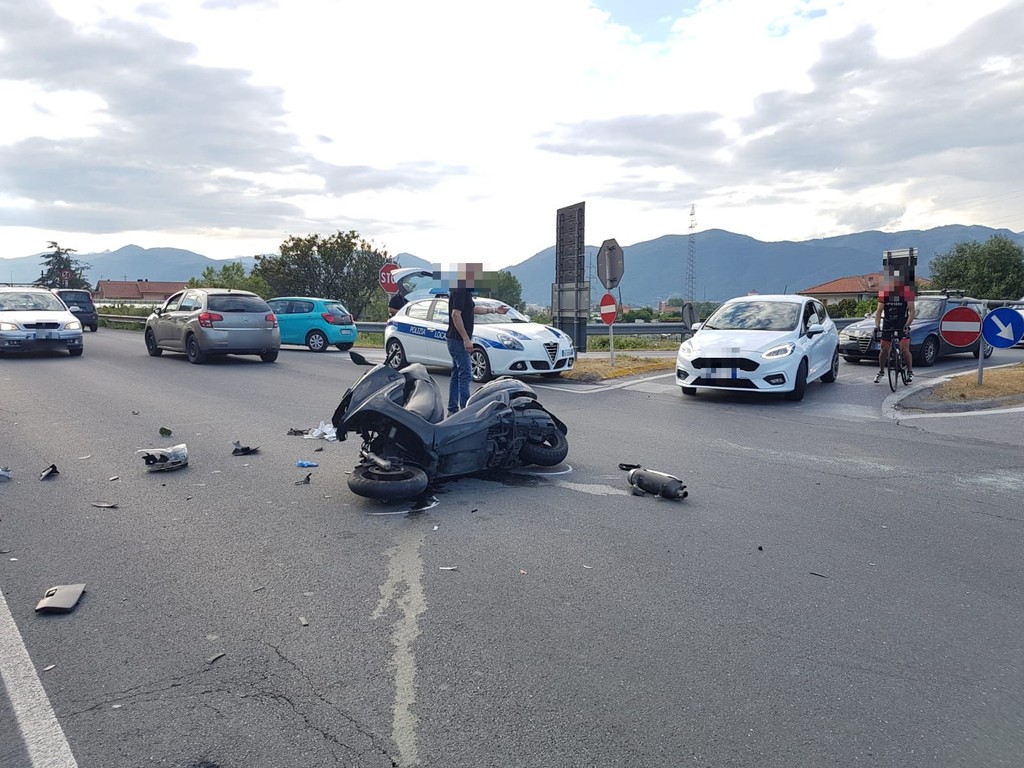 Si è verificato sulla strada provinciale 6, che collega Albenga a Villanova passando per Lusignano, un incidente che ha visto coinvolta una macchina e un grosso scooter Majesty.