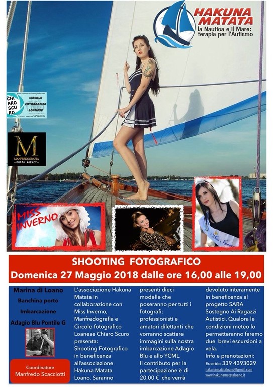 Gli scatti avverranno a partire dalle ore 16 al pontile G, presso lo Yacht Club alla Marina di Loano e a bordo della "Adagio Blu", la magnifica imbarcazione a vela della Hakuna Matata, un Oceanis 370 di 12 metri.