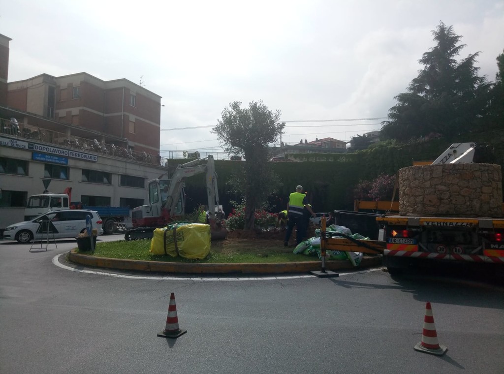 "Oggi è stato messo a dimora nella rotonda di Largo Folconi un bellissimo esemplare di ulivo Taggiasco di circa 300 anni donato dalla Regione Liguria e proveniente da Euroflora 2018" spiega l'assessore all'ambiente Pietro Santi.