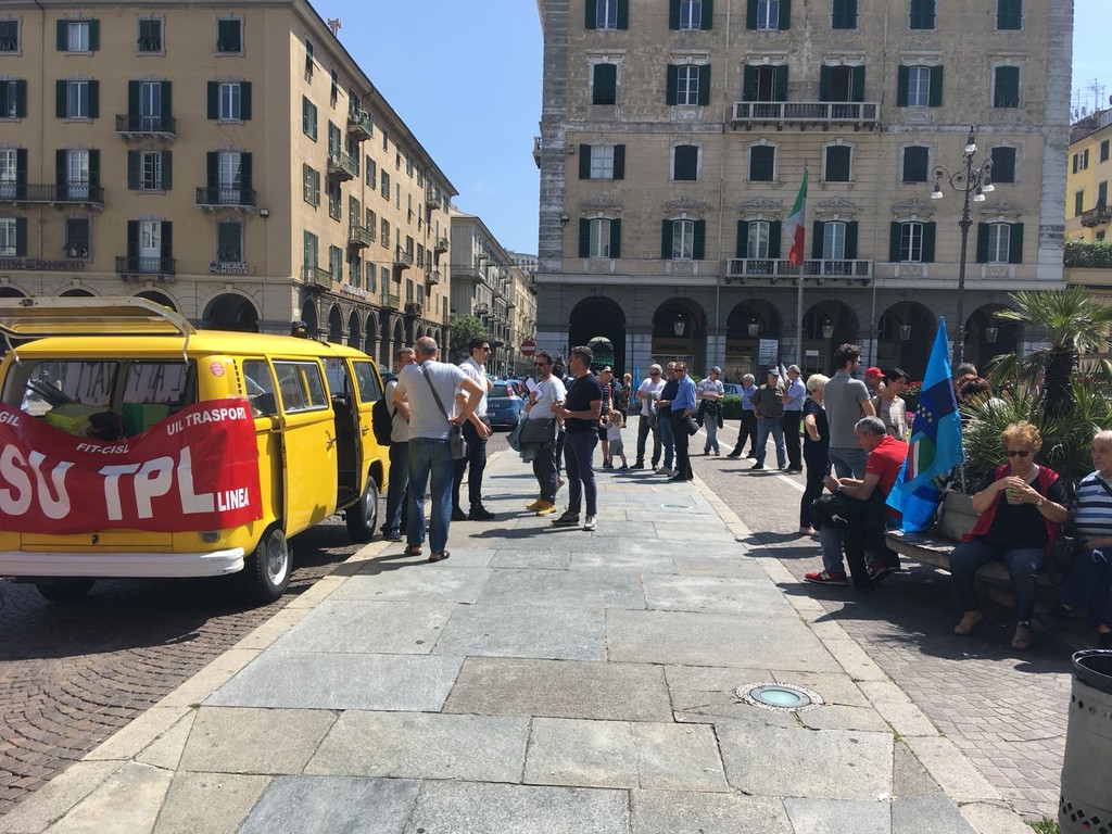 Il personale di Tpl Linea di Savona questa mattina è sceso nuovamente in piazza per lottare contro la privatizzazione del servizio di trasporto pubblico locale.