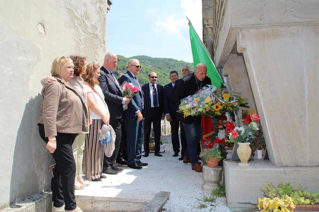 La visita all'interno del Comune di Stella è stata l'occasione per rendergli omaggio e consegnare all'Associazione Pertini due bandiere. Inoltre, è stato deposto un cuscino di fiori sulla tomba. Presente anche il sindaco di Stella Marina Lombardi.