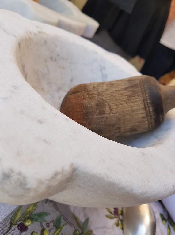"Per rinfrescare queste giornate soleggiate viene offerto ai numerosi turisti il basilichito o altre bibite a base di aromatiche gentilmente offerte da alcuni dei numerosi partner. Lo stand, ogni anno più accogliente sarà arricchito da fiori e ortaggi delle Ortofrutticole di Albenga e Andora e dal materiale illustrativo della Regione Liguria e dei Comuni del Comprensorio Inaguno. Un angolo particolare e dedicato al pesto al mortaio arricchito dall'olio extravergine DOP Riviera Ligure".