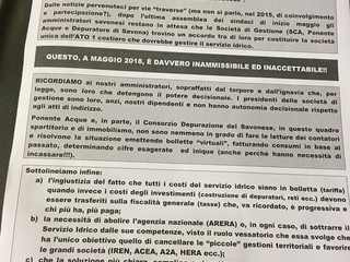 Afferma Alberto Dressino del Comitato savonese Acqua Bene Comune: "Siamo qui per ricordare undovere ai politici e ai sindaci che ci rappresentano di ciò che è già stato deciso all'unanimità o comunque oltre la metà della popolazione italiana dei votanti e cioè che siamo per l'acqua pubblica. Detto questo siamo qui per ricordare la necessità di fare percorsi virtuosi che fino ad oggi non abbiamo visto".