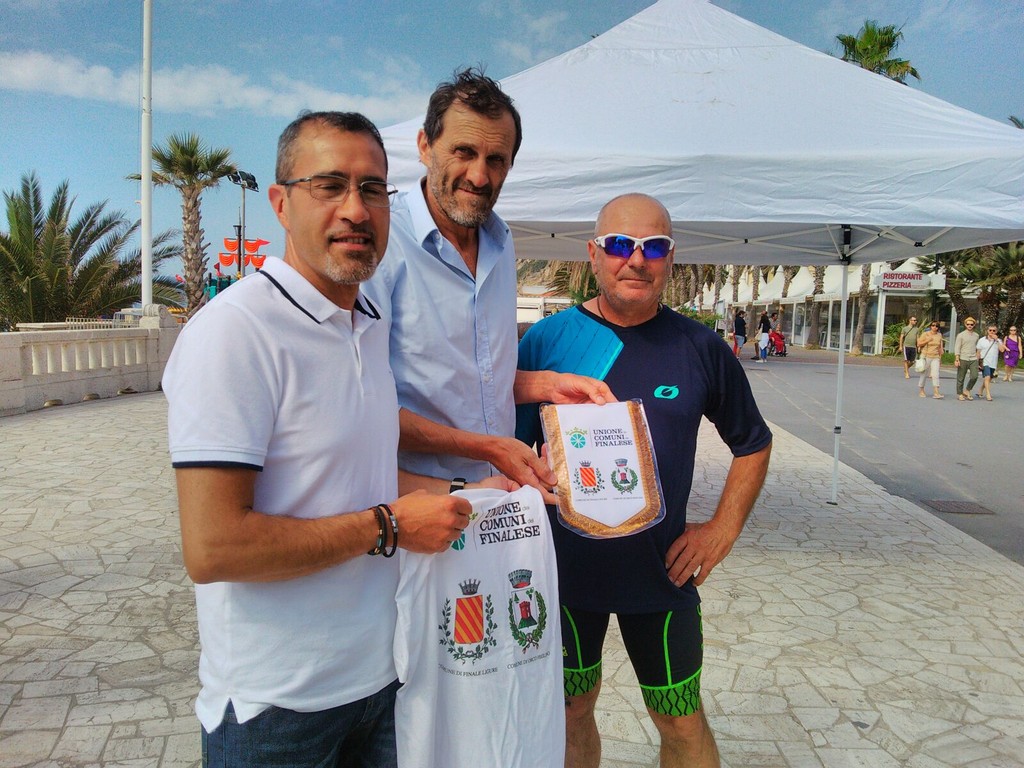 Paltani è partito questa mattina non prima di ricevere in omaggio la maglietta e il gagliardetto dell'Unione Comuni Finalese consegnate dall'assessore del comune di Finale Ligure Claudio Casanova e da Roberto Barelli, sindaco di Orco Feglino oltre agli abbracci e le strette di mano dei cittadini occorsi.