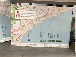 11 defibrillatori automatici, 22 postazioni di salvataggio, 24 punti di primo soccorso a Savona: Bagni Savona e Bagni Aurora; Bagni Wanda, Bagni Anna, Sirena e Bagni Ligure; Bagni Arci; Bagni Marinella e Bagni Torino; Bagni Nettuno; Bagni Olimpia, Bagni Colombo e Bagni Cavour; Bagni Italia; Bagni Sant’Antonio; Bagni San Cristoforo e Bagni Umberto; Bagni Lido Dei Pini; Bagni Marea.