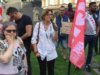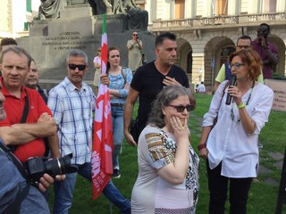 La piazza si è riempita davanti al monumento e sono intervenuti nell’ordine Samuele Rago, presidente provinciale Anpi, Stefania Druetti, responsabile Cgil nel settore migrazione, Anna Traverso dell’Anpi e ha concluso il presidio Alessio Artico, presidente Arci.