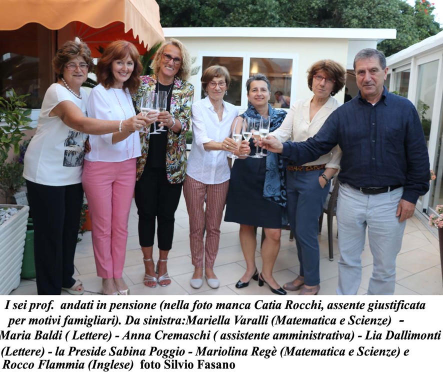 Assente, purtroppo, per motivi famigliari la professoressa Catia Rocchi (matematica), anche lei andata in pensione. Cerimoniera della serata la collega professoressa Letizia Cavallaro.