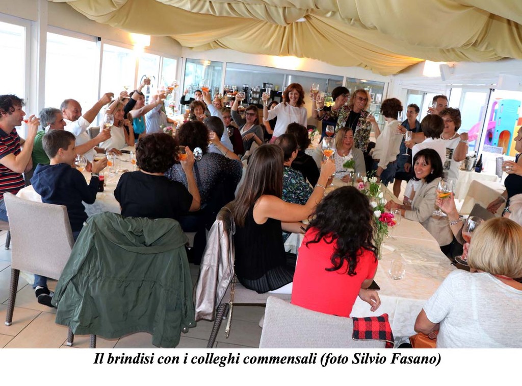Professori e professoresse si sono accomodati nella terrazza del Regina, occupando 4 tavolate e consumando una raffinata cena, brindando alla fine ai loro colleghi che hanno lasciato l'insegnamento.