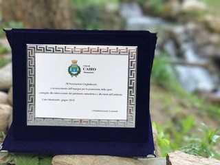 "A riconoscimento dell'impegno per la promozione dello sport coniugato alla valorizzazione del patrimonio naturalistico e alla tutela dell'ambiente". Il comune di Cairo Montenotte consegna una targa all'ASD Cinghialtracks.