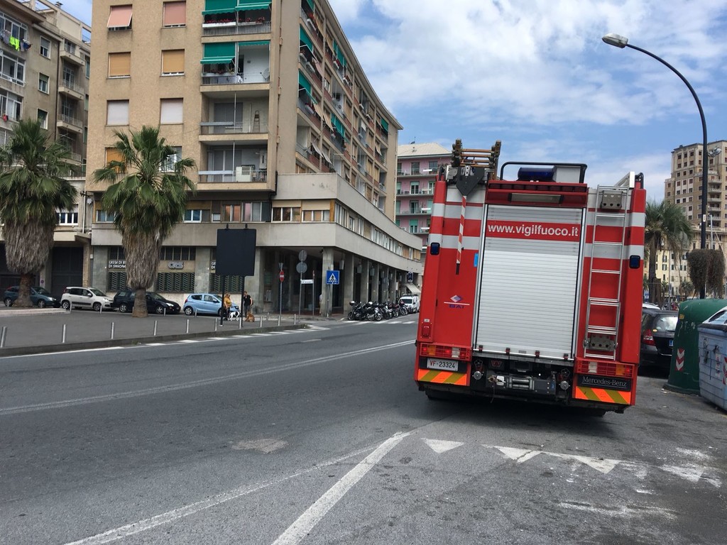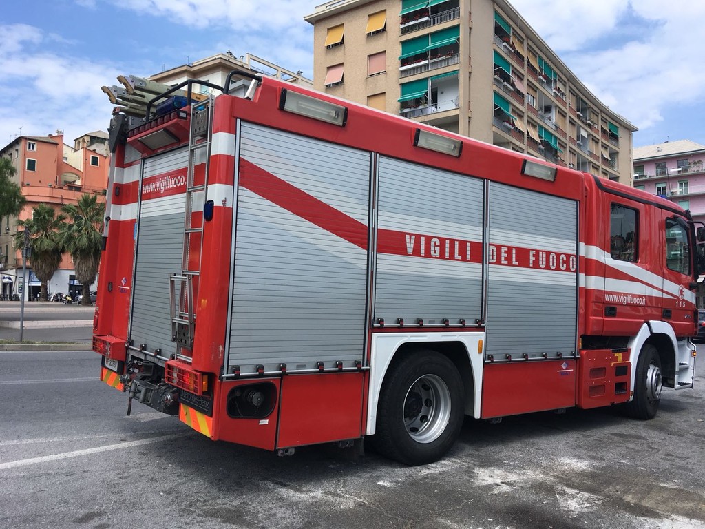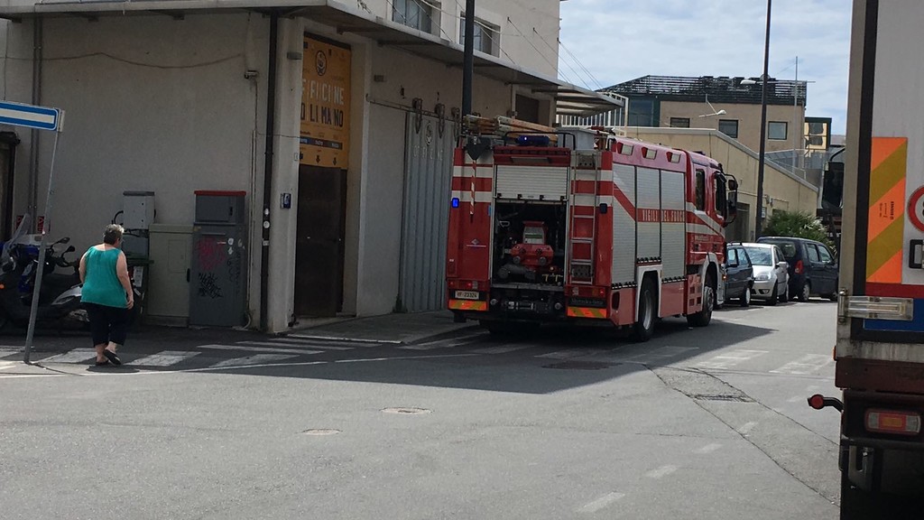 Intervento dei vigili del fuoco in via Chiodo a Savona, in zona Darsena. L'allarme è stato lanciato intorno alle ore 11.30 nella zona adiacente a Piazza Rebagliati.