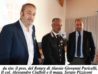 Si è svolta con un pubblico molto attento la conferenza sulla sicurezza tenuta dal ten. col. Alessandro Ciuffoli, comandante il Nucleo Operativo Provinciale di Savona. L'evento, organizzato dal Rotary Club di Alassio (presidente Giovanni Puricelli) ha voluto portare a conoscenza specialmente delle persone anziane e sole dei pericoli "moderni" in agguato che nuove generazioni di truffatori mettono in atto, usano i nuovi mezzi di comunicazione persino a distanza, cioè da paesi lontani migliaia di chilometri, manovrando complici sul posto.