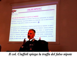 Ciuffoli ha spiegato il trucco del nipote falso, del parente venuto da oltreoceano, dell'amico del figlio, tutti abili truffatori che riescono a convincere la vittima persino a farli entrare in casa (che verrà svaligiata) o addirittura a recarsi in banca a prelevare denaro da consegnare a loro.