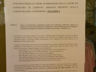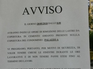 La preoccupazione è sorta a seguito di alcuni cartelli che invitano a seguire alcune norme di cautela e prevenzione in occasione di lavori di rimozione dell'amianto. Genitori: "Scrivono di tenere le finestre chiuse, ma i nostri bambini giocano in cortile"
