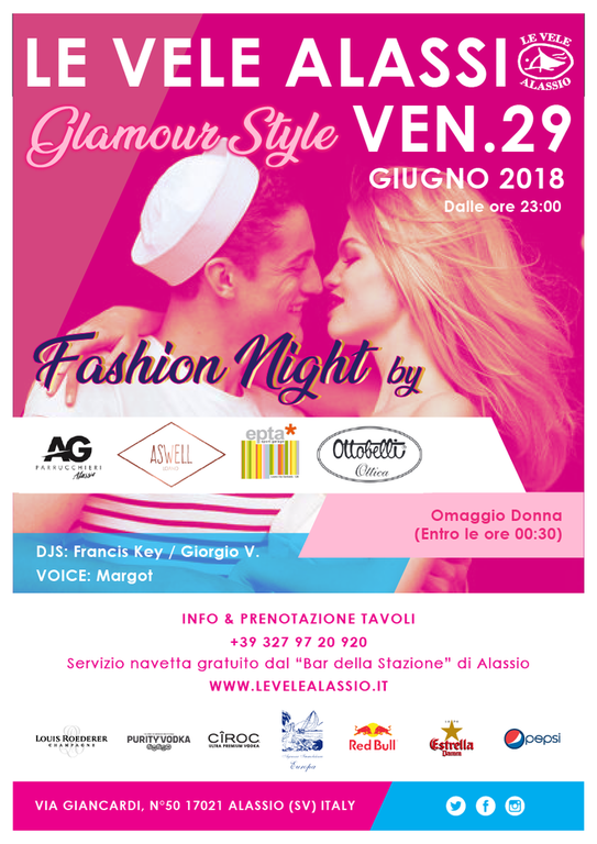 Ven 29 Giugno: Le Vele Alassio - Glamour Style - Fashion Night