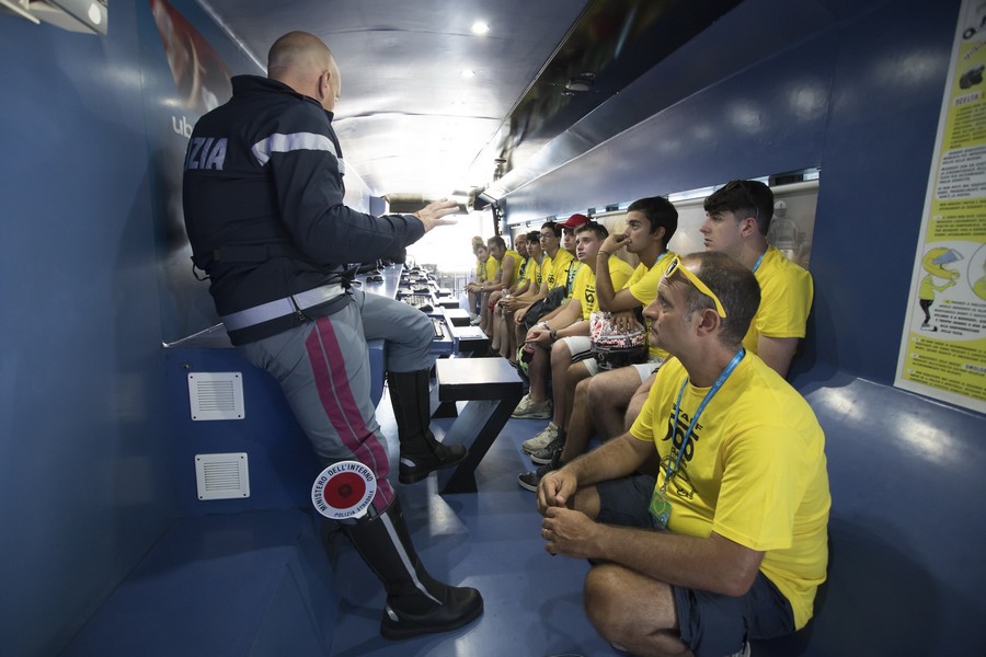 Oltre un centinaio di auto si sono invece recate a Ceriale per un rinfrescante tuffo presso il Parco Acquatico Le Caravelle. Coloro che sono rimasti nel cuore della festa a Garlenda hanno avuto modo di scoprire il favoloso Pullman Azzurro della Polizia Stradale. Il Pullman Azzurro è stato preso d'assalto dai cinquecentisti incuriositi dalla presenza del famoso autobus che gira l'Italia durante i più importanti eventi. Si tratta di uno strumento tecnologico grazie al quale gli agenti della Polizia spiegano, tramite video, giochi e attività interattive, l'importanza di tenere un comportamento corretto e rispettoso e quali sono le conseguenze delle azioni irresponsabili.