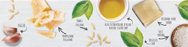 ▪ Con i produttori di: Basilico Genovese DOP, Olio extra Vergine di Oliva Riviera Ligure DOP, Aglio di Vessalico Presidio Slow Food, Sale marino di Cervia Presidio Slow Food, Pinoli di San Rossore, Pecorino fiore sardo Presidio Slow Food, Parmigiano Reggiano della vacca bianca modenese Presidio Slow Food, Pasta artigianale ligure.