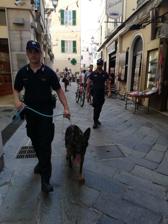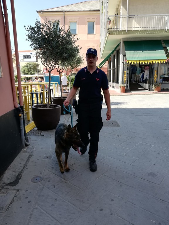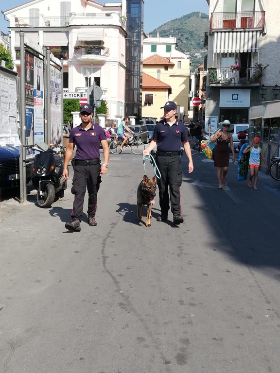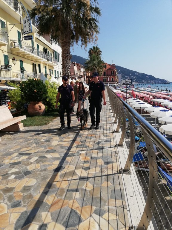 Come ogni domenica è in servizio il nucleo Cinofili che in questo momento sta pattugliando il budello di Alassio, i carruggi, gli stabilimenti balneari, il molo e tutte le zone ricettive assediate dai turisti.