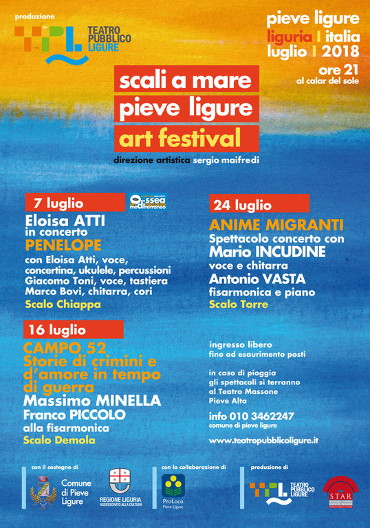 Sul mare, al tramonto: Mario Incudine e Antonio Vasta percorrono la Liguria da Ponente a Levante con uno spettacolo concerto ospitato da Teatro Pubblico Ligure, Anime migranti. I due artisti siciliani, ormai seguiti da un pubblico affezionato, portano il loro spettacolo concerto lunedì 23 luglio (ore 21) ad Albisola Superiore, dove aprono la rassegna “In movimento”.