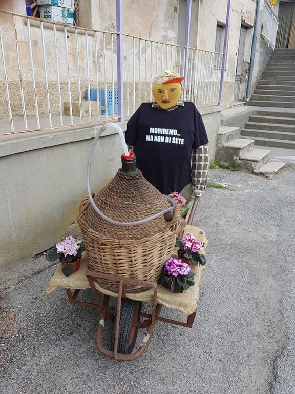 'Strani individui' di paglia per sensibilizzare contro l'abbandono dei piccoli Comuni dell'entroterra.