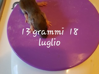 Dei sei ghiretti, affidati alle cure delle volontarie Enpa Anna e Silvia, tre non ce l’hanno fatta, ma gli altri tre stanno bene e crescono: nelle foto si può vedere uno di loro nell’ordine, appena arrivato, il 18 luglio e l’altro ieri; da quel minuscolo esserino tremolante è passato in dieci giorni da 13 a 51 grammi e tra poco finirà lo svezzamento a base di poppate di latte; e quando saranno autosufficienti si cercherà una zona idonea, lontano da case abitate, per metterli in libertà.