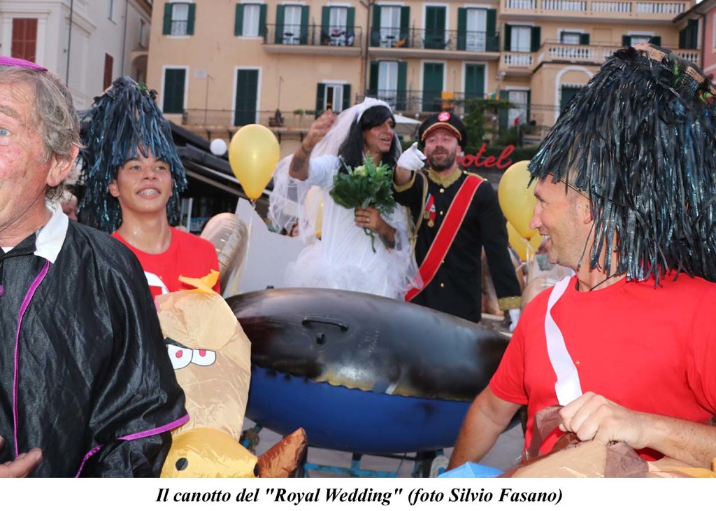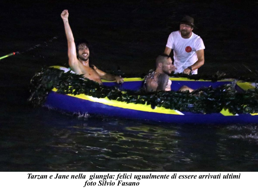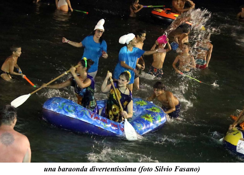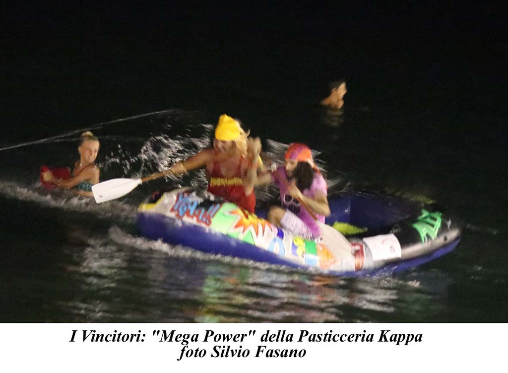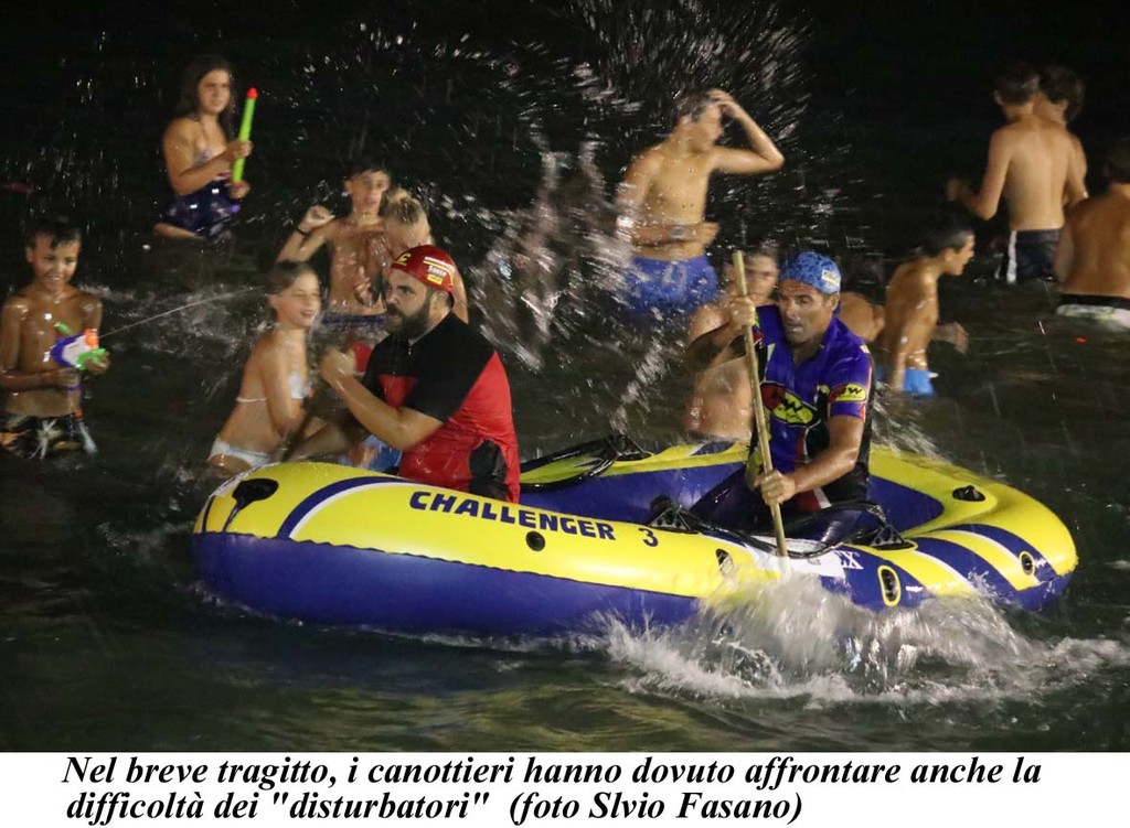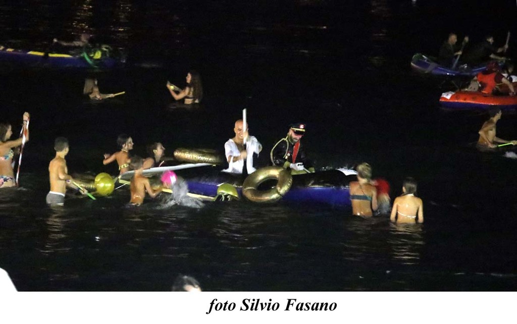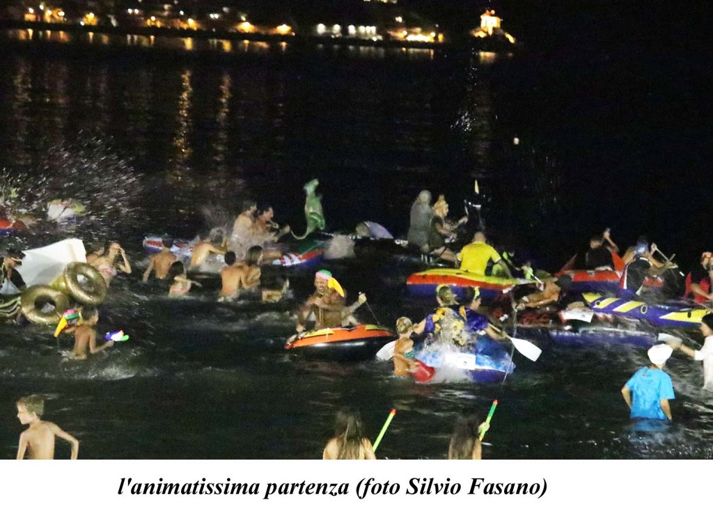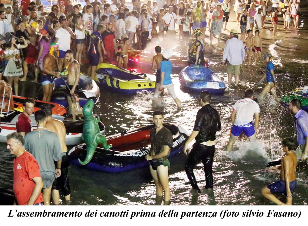 Alle 20 sono comiciati ad arrivare sul molo , canotti colorati con il tema dei Puffi, di Tarzan, de Royal Wedding, Jurasic park, il Signore degli Anelli, ecc. Tutto era pronto per la partenza in acqua alle 21, ma un guasto tecnico elettrico impediva l'illuminazione dello specchio d'acqua, per cui, per motivi di sicurezza, non era possibile dare il via.
