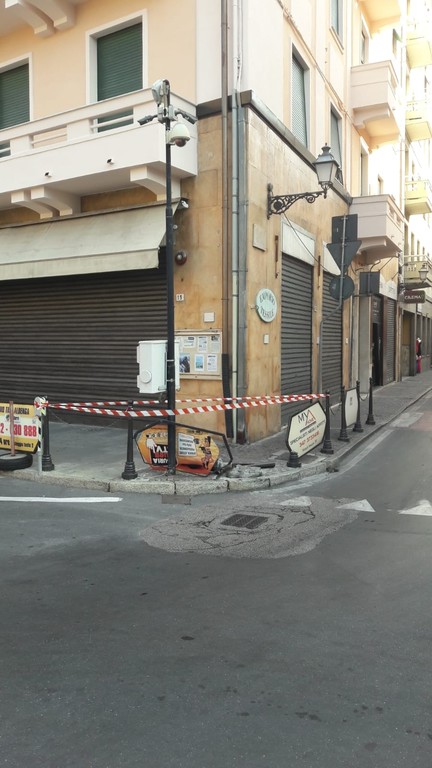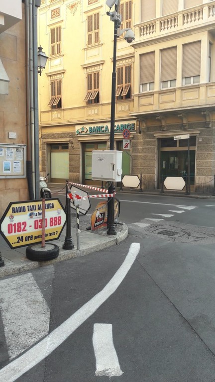 Questa mattina un tir ha danneggiato le transenne parapedonali di piazza del Popolo ad Albenga.