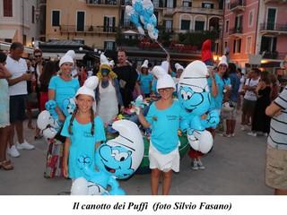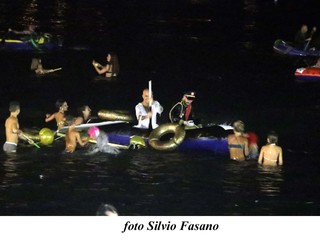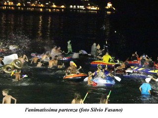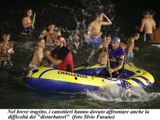 Alle 20 sono comiciati ad arrivare sul molo , canotti colorati con il tema dei Puffi, di Tarzan, de Royal Wedding, Jurasic park, il Signore degli Anelli, ecc. Tutto era pronto per la partenza in acqua alle 21, ma un guasto tecnico elettrico impediva l'illuminazione dello specchio d'acqua, per cui, per motivi di sicurezza, non era possibile dare il via.