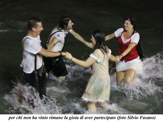 Concitati rinvii, telefonate all'Enel, niente ancora. Mentre il conduttore Marco Dottore magistralmente intratteneva tutti, si arrivava ale 22. Interveniva allora il sindaco Marco Melgrati che riusciva a sollecitare tecnici dell'Enel a ripristinare l'energia. Si vedevano sul molo anche validi tecnici dell'Enel, ora in pensione, che davano il loro contributo di tecnici d'esperienza. Finalmente alle 22,30 il via e la gioa ritornava nei visi di tutti, spettatori e partecipanti. Non è mancato quindi lo spettacolo e il dopo spettacolo che mostrava i partecipanti felicissimi a giocare ancora in acqua e a ballare sul molo con la musica del dj Fabietto Cattaneo.