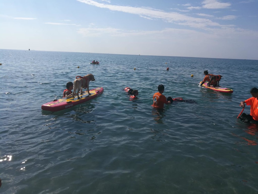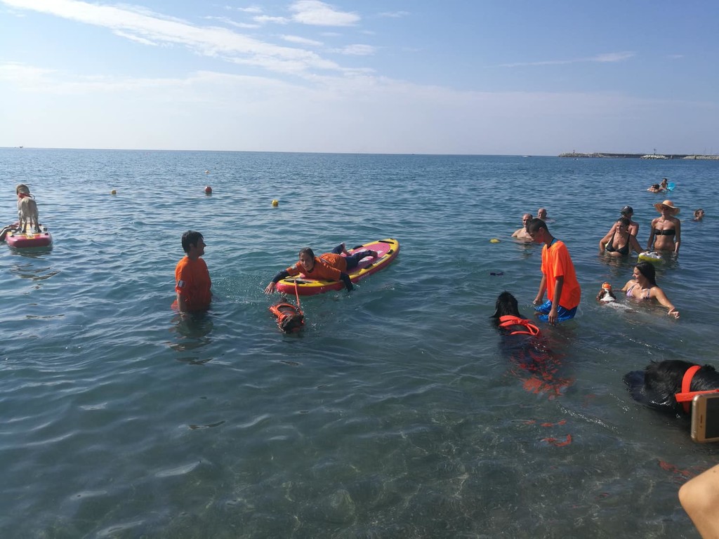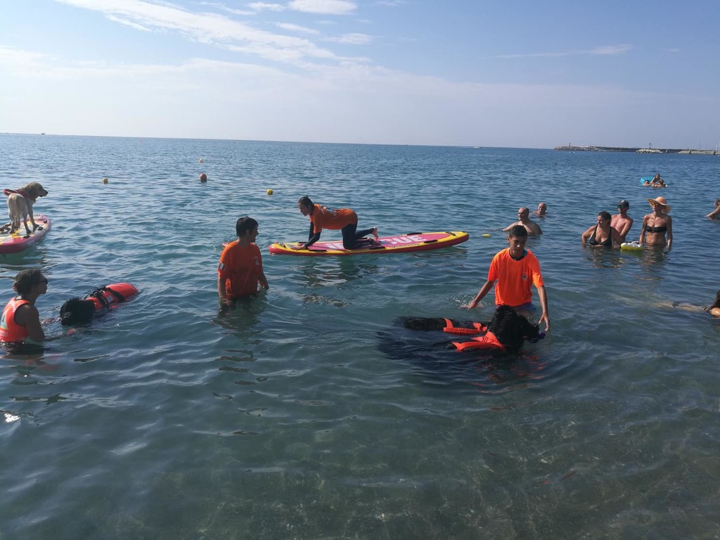 Sulla spiaggia pietrese si è così potuto assistere a diversi esempi di operazioni di soccorso e assistenza a persone in difficoltà in acqua: protagonisti principali i cani-bagnino, accompagnati dai loro conduttori anch'essi bagnini certificati.