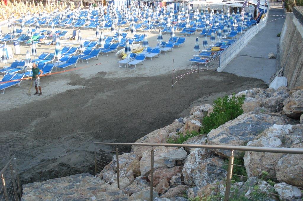 La sabbia che è stata posizionata dal Comune sulla spiaggia libera accanto al Porto turistico di Andora, dove è stata anche installata anche una doccia. Ripascimento sotto il dehor dei bagni Nostromo, sulla Spiaggia Libera Attrezzata centrale e nelle due porzioni di litorale liberi della passeggiata di ponente, all’altezza di via Sardegna, dove è stata sistemata anche una scala d’accesso danneggiata dal mare.