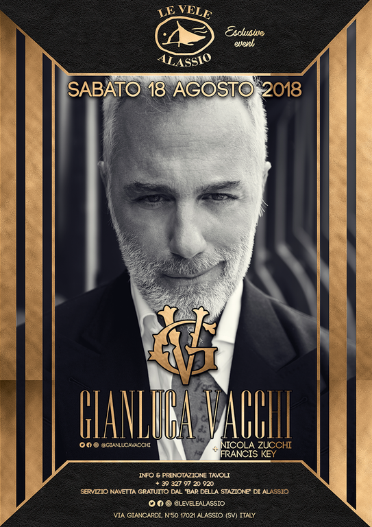 Sganciamo la bomba di Agosto!! Sabato 18 Agosto Exclusive Event #2 Get ready for the man himself: Mr. Gianluca Vacchi !!! + Nicola Zucchi + Francis Key