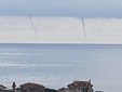Doppia tromba marina questa mattina nel levante della Provincia di Savona. Il fenomeno atmosferico ben visibile anche dalla costa, si è verificato al largo tra Albisola e Varazze.
