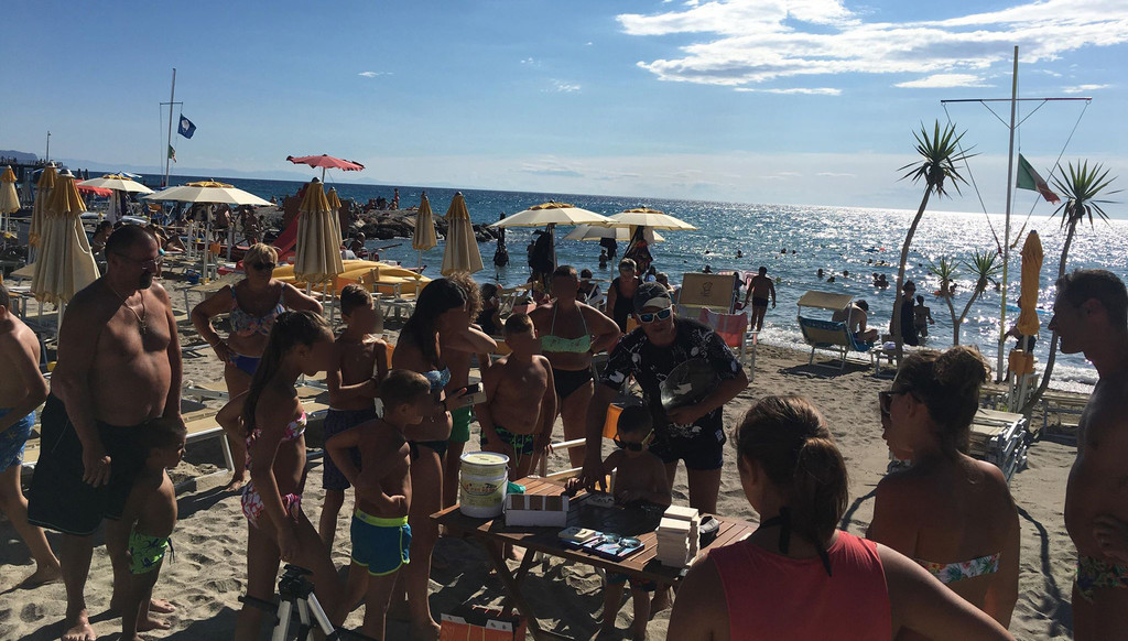 Solo nella mattinata, fino alle 12:30, presso i Bagni Ceriale (che ringraziamo per le foto) sono stati raccolti 220 euro destinati a essere devoluti all’ospedale pediatrico “Giannina Gaslini” di Genova per il reparto di oncologia. Nel pomeriggio la manifestazione si è spostata ai Bagni Martini. L’evento è stato voluto e organizzato dall’Ufficio Vigilanza Ambiente e Territorio del Comune di Ceriale, in collaborazione con numerosi stabilimenti balneari cittadini.